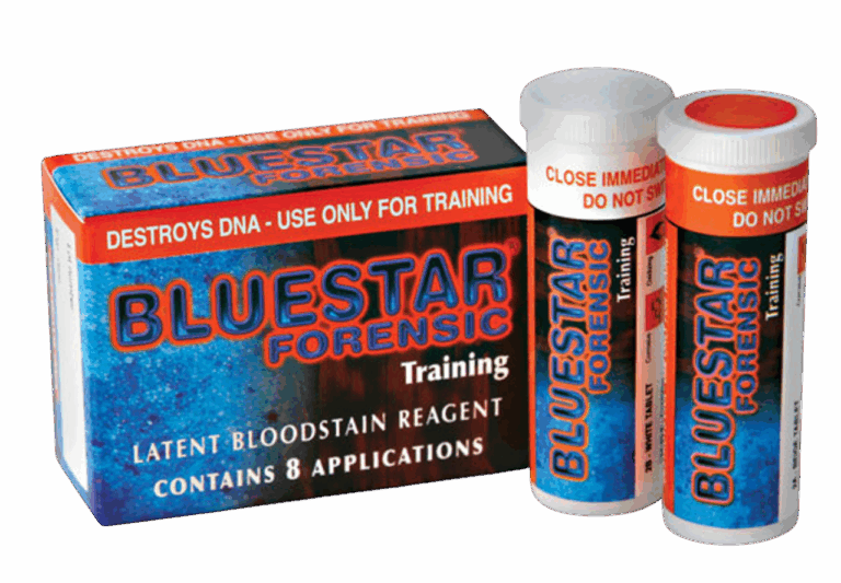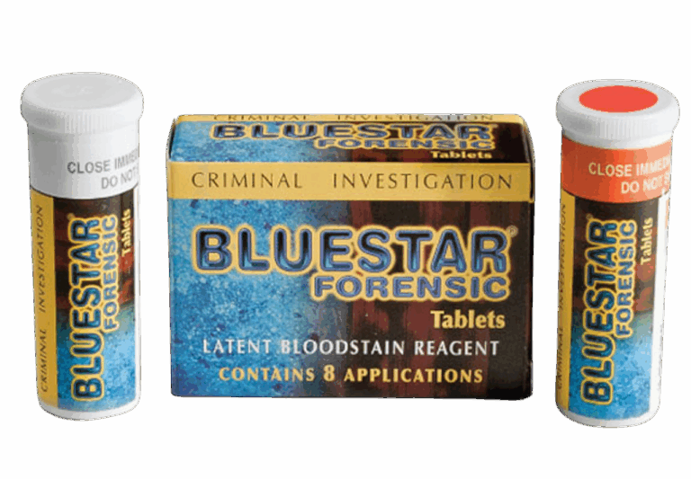 BLUESTAR® Forensic ist ein spezialisiertes Reagenz-Set zur zuverlässigen Sichtbarmachung latenter Blutspuren – selbst wenn sie gewischt, verdünnt oder bereits gewaschen wurden. Die chemilumineszierende Lösung reagiert mit Hämoglobin-Eisen und erzeugt eine langanhaltende Lumineszenz unter Teildunkelheit. DNA bleibt dabei unversehrt, sodass nachfolgende Analysen möglich bleiben. Ideal für Tatort- und Laboranwendungen: Das Set enthält Lösung, Katalysatortabletten und Sprühaufsatz zur Anwendung auf Kleidung, Textilien, harten Oberflächen oder vertikalen Flächen. Die hohe Sensitivität erlaubt den Nachweis feinster Tröpfchen oder Gewebefasern, die mit bloßem Auge kaum erkennbar sind. Detailgenaue Dokumentation und Fotografie werden durch die starke Lumineszenz erleichtert – die Lösung kann nach Vorbereitung mehrere Tage gehalten werden. So wird effektive Spurensicherung möglich – von Fahrzeugen über Tatortmöbel bis zu Wäschestücken.