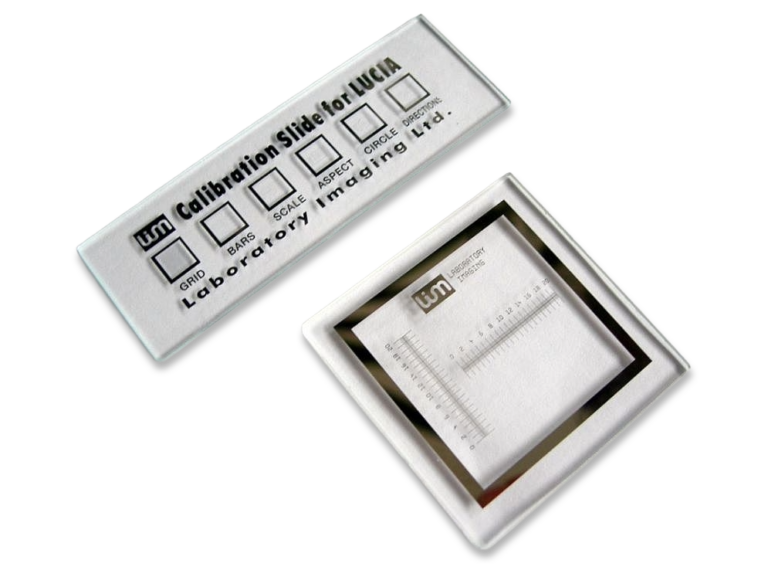 Objektmikrometer und Kalibriermaßstäbezur Objektiv- und Strichplatten-KalibrierungHohe TeilungsgenauigkeitIntegrierte DeckglaskorrekturVerschleißfeste Glasmaßstäbe
