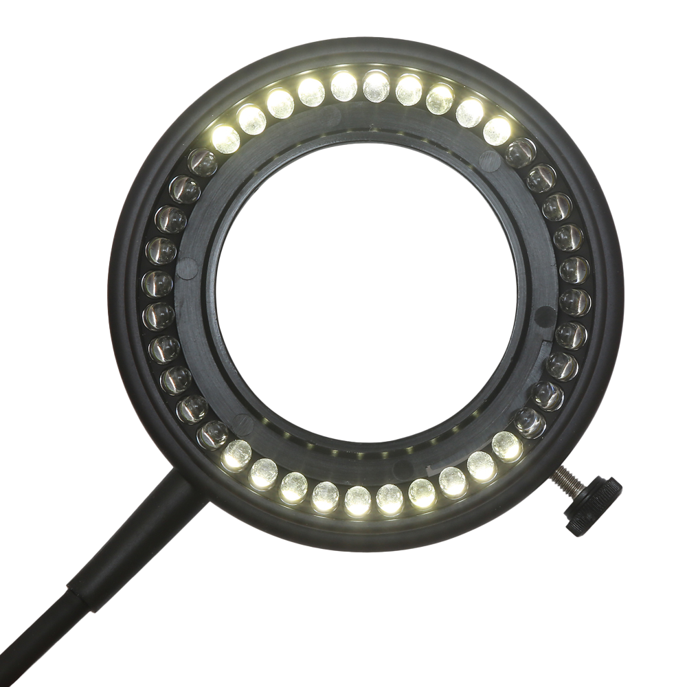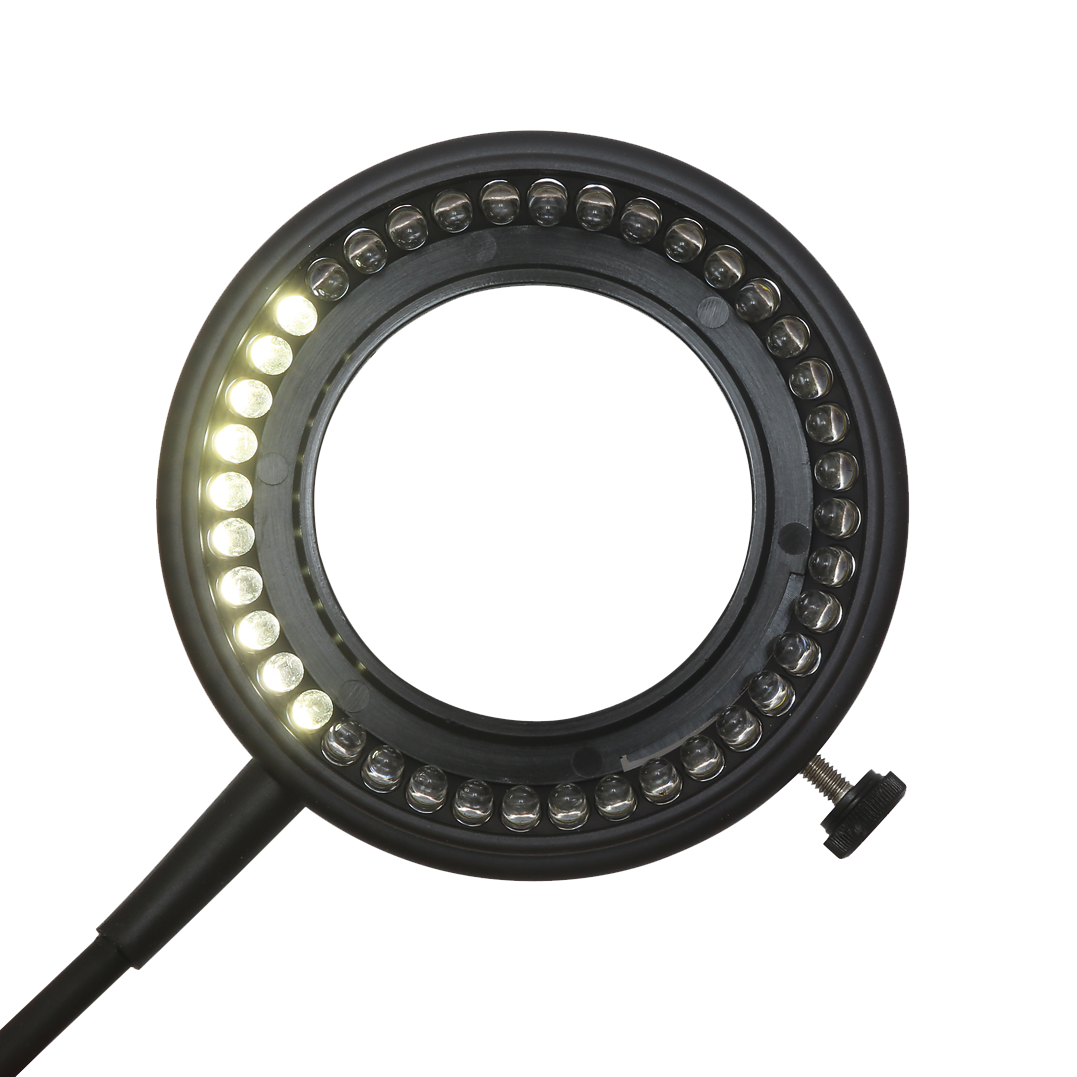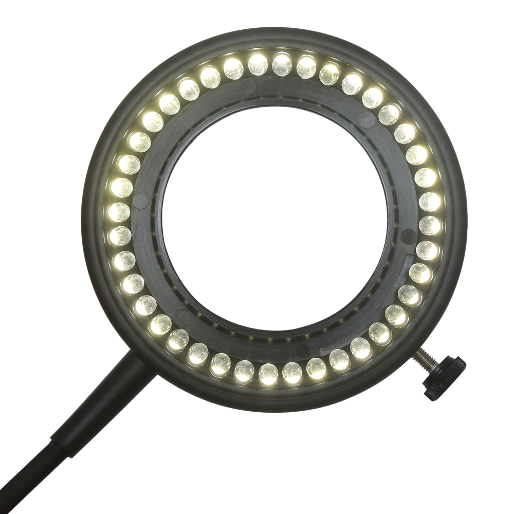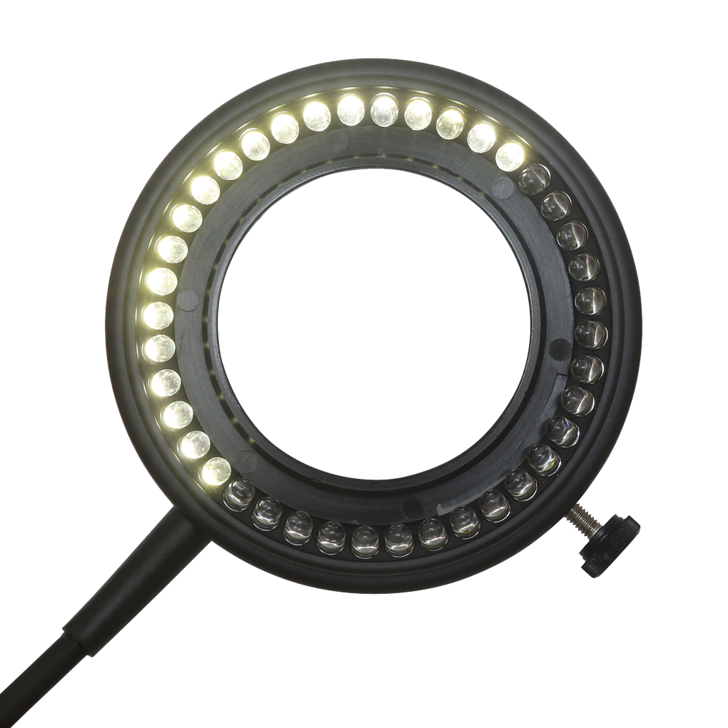 Das LED Ringlicht 40 bietet eine gleichmäßige, segmentierbare Ausleuchtung mit 40 weißen LEDs – ideal für Ø 66 mm Objektive, durch Adapter kompakt kompatibel.