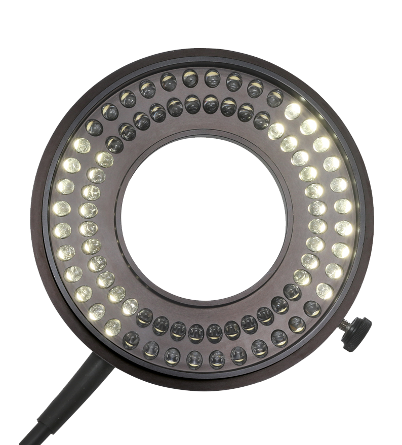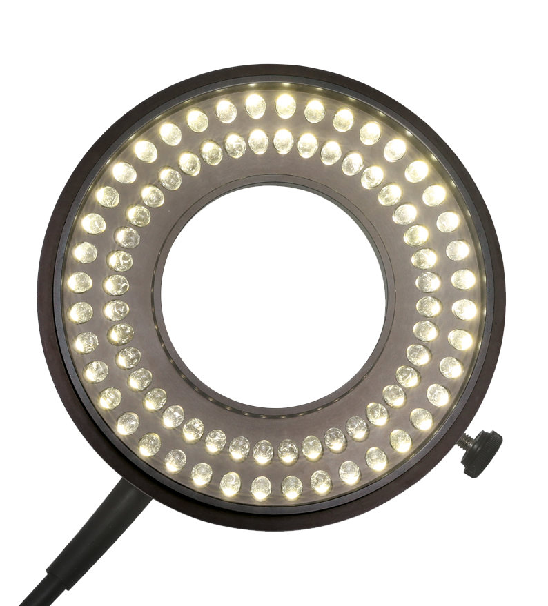 Das LED Ringlicht 80 von Photonic kombiniert helle und homogene Ausleuchtung durch 80 LEDs mit segmentierbarer Steuerung für Voll-, Halb- oder Viertelkreis. Die maximale Lichtintensität ist vergleichbar mit der Leistung einer 150 W Halogenlichtquelle. Die Adaption erfolgt direkt am Objektiv (standardmäßig Ø 66 mm), es sind aber weitere Adapter verfügbar. Die Lichttemperatur beträgt ca. 5000 K und für den Arbeitsabstand sind zwei Varianten verfügbar (35 – 120 mm oder 120 - 300 mm). Zusätzlich kann ein Polfilterset (bestehend aus drehbarem Polarisator und Analysator) adaptiert werden, was vor allem bei reflektierenden Oberflächen die Bildqualität sowie den Komfort bei der Objektbetrachtung deutlich erhöht.